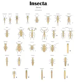 | Insecta Linnaeus, 1758 | |||||||||||||||||||||||||||||||||||||||||