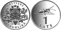 - ↑ Латвия. Национальная валюта лат. Нумизматика, монеты. Дата обращения: 28 августа 2013. Архивировано 3 февраля 2012 года.