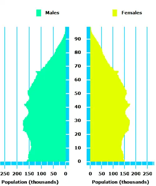 - 65 лет и старше: 13,2 % (на 2008)[5]