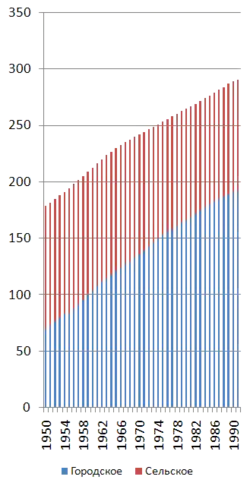 | Год | Население СССР, млн чел. | Городское | Сельское |