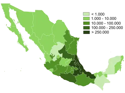 - ↑ Source: INEGI (2000). Percentages given are in comparison to the total population of the corresponding state.