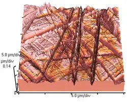 Компьютерное отображение топографических поверхностей: Через компьютерное отображение топографических поверхностей математики могут тестировать теории того, как материалы меняются при напряжении. Изображение является частью работы созданной Национальным научным фондом Лаборатории Электронной Визуализации при Иллинойсском университете в Чикаго.