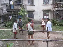 | Чхинлун — национальный вид спорта Мьянмы[4]. Игра не предполагает соревнования; игроки должны продемонстрировать умелое владение мячом, не давая ему касаться земли и не трогая руками. Крупным центром игры в чхинлун является Мандалай. |