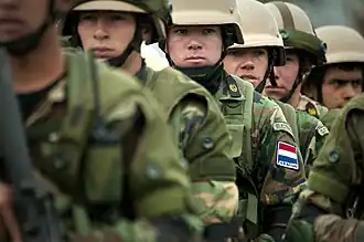 Парагвайская морская пехота включает в себя штаб и штабную роту, три батальона морской пехоты, амфибийную диверсионно-десантную группу и батальон боевой поддержки.[2]