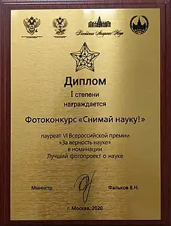 - Конкурс научных фотографий «Снимай науку», ежегодно организуемый «Викимедиа РУ» совместно с телеканалом «Наука», дважды (в 2017 и 2019 гг.) был удостоен премии «За верность науке» Министерства образования и науки.
