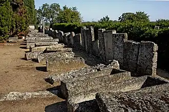 Римляне чаще располагали некрополи вдоль дорог для напоминания живущим о подвигах предков (наиболее известный — Римские катакомбы вдоль Аппиевой дороги).