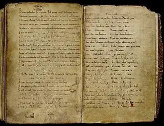 Рядом с этой поэзией для высшей интеллигенции (и рядом с вечно живой, но неуловимой по отношению к столь отдалённой эпохе народной песней), существовала другая — для народа и безграмотных людей: поэзия шпильманов, то есть бродячих певцов, сделавших себе ремесло из забавы публики. По мере распространения латинского образования в монастырских и епископских школах Германии, в среду этих шпильманов все чаще и чаще попадают ваганты. Иногда монахи и клирики пользуются материалом песен шпильманов для упражнения в латинской стилистике и версификации; так возникают поэмы вроде «Ruodlieb» и стихотворные рассказы из животного эпоса («Ecbasis captivi» и пр.). Изредка произведения шпильманов записываются в оригинале, и тогда содержание, грубость формы, наклонность к шутке и преувеличению довольно резко отличают их от поэзии духовенства. Со временем это различие значительно сглаживается; шпильманы пользуются сюжетами из священной истории; познакомившись с новыми географическими и историческими именами, они распространяют и украшают ими свои песни. С другой стороны, поэзия духовных все более и более примиряется с жизнью и светским миросозерцанием.