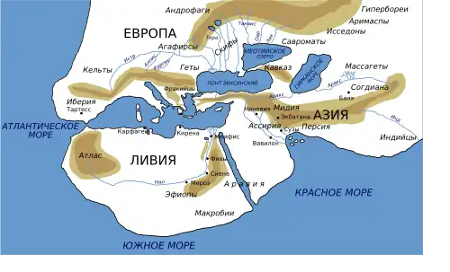Над вопросом об истоках Нила бились европейские умы со времён Геродота, который в своей «Истории» выступил с опровержением мнения о том, что разлив Нила происходит от таяния снегов в его верховьях. Согласно карте Геродота, Нил сливается с Нигером. Кроме того, «отец истории» приводит известие саисского жреца, что воды Нила бьют ключом из земли между Сиеной (ныне Асуан) и Элефантиной, причём половина их течёт на юг, а другая половина — на север.
