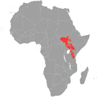 Ареал Эфиопия, Южный Судан, Уганда, Кения, северная Танзания