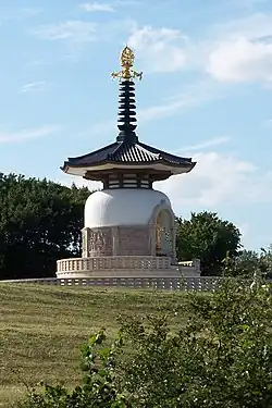 В 1947 он начал постройку Пагод Мира — символов мира во всём мире. Первые пагоды были возведены в Хиросиме и Нагасаки в память о ядерной бомбёжке этих городов.