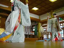 Искусство танца существовало в Японии в дописьменный период[1]. В Кодзики и Нихонги описан миф о том, как спрятавшуюся в пещере богиню солнца Аматэрасу заставила выглянуть из убежища танцующая богиня Ама-но удзумэ-но микото.