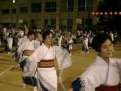 Развитие танца, как и других традиционных искусств, получило толчок с распространением буддизма[2]. В период Сэнгоку (XVI век) жрицы мико стали выступать у Камогавы, между улицами Сидзё и Гионся. Тогда появился новый жанр религиозного танца — нэмбуцу-одори (яп. 念仏踊り, «пляска, повторяющая имя будды Амиды»). Многие танцы, например, Госюгимоно, родились из религиозных церемоний и духовных практик.