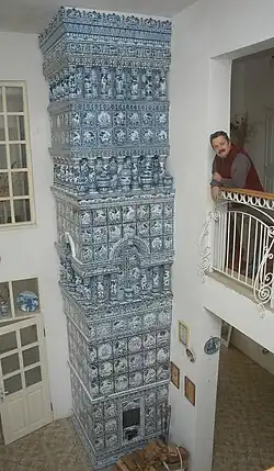 В 2006 г. к своему юбилею закончил уникальную изразцовую печь[6] в Выставочном зале своего дома, изразцы для которой изготавливал и расписывал стилизованными сюжетами из собственной биографии в течение 8 лет [12; 25; 28; 29; 30]. Он же автор конструкции печи — сделал 9 вертикальных ходов и использовал старинные технологии кладки изразцов для высокого КПД (всё тело печи нагревается и сохраняет тепло в течение нескольких дней). Она оказалась самая высокая в мире — 6,02 м. В ней около 617-ти неповторяющихся по рисунку изразцов [22; 26; 27; 33; 35; 36].