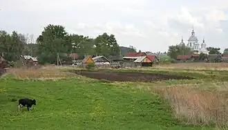 Располагается церковь Троицы Живоначальной. Церковь. Действует. Престолы: Троицы Живоначальной, Николая Чудотворца, Михаила Архангела, Екатерины великомученицы, Успения Пресвятой Богородицы. Архитектурный стиль: ампир. Год постройки: 1836.