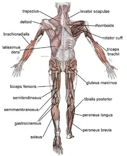 В состав опорно-двигательной системы входят поперечно-полосатые мышцы (скелетные мышцы). Мышцы — это активная часть опорно-двигательного аппарата. Большинство мышц крепятся к костям скелета двумя концами с помощью сухожилий.
