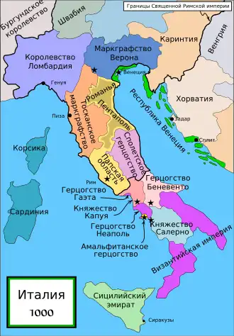 В 1030 году герцог Неаполитанский Сергий IV пожаловал предводителю нормандцев Райнульфу руку своей сестры и графство Аверса. Аверса стала первым нормандским государством в Южной Италии.