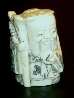 - божества и мифические существа, часто из китайских мифов и религии, нэцкэ, изображающие одного из семи богов удачи, которые, согласно синтоизму, приносят удачу