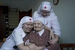 В Церкви активно развивается институт сестер милосердия. Ежегодно появляется 5-6 новых сестричеств милосердия. Всего в Церкви действует более 300 сестричеств милосердия. Сестры милосердия ухаживают за одинокими пожилыми и инвалидами на дому, в больницах и интернатах, а также в церковных богадельнях — приютах для пожилых и инвалидов. В России работают свыше 60 богаделен[54].