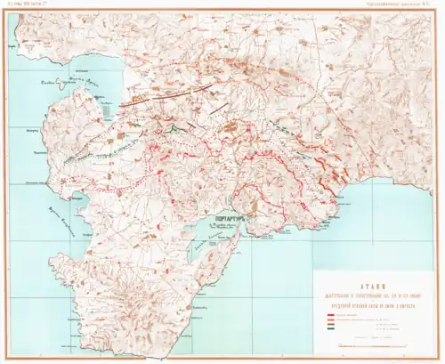 - ↑ Русско-японская война 1904—1905 гг. Том VIII. Оборона Квантуна и Порт-Артура. Часть вторая. От начала тесного обложения до конца осады (17 июля — 20 декабря 1904). / Работа Военно-исторической комиссии по описанию русско-японской войны. — СПб.: Тип. Н. В. Гаевского, 1910. — Карта №.1.