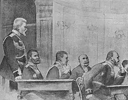 Уволенный в 1906 году со службы А. М. Стессель на следующий год предстал перед военным трибуналом, который приговорил его к смертной казни за сдачу порта. Обвинение утверждало, что в течение всего периода обороны Стессель не руководил действиями гарнизона по защите крепости, а, наоборот, сознательно готовил её к сдаче.[15]