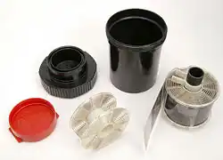Обработка небольшого количества фотоматериалов чаще всего производится вручную с использованием несложных приспособлений, таких как проявочные бачки и кюветы. Первые необходимы для обработки рулонных фотоматериалов и оснащаются спиралью, поддерживающей гарантированный зазор между витками, беспрепятственно пропускающий фотореактивы к эмульсии. В кюветах проявляется фотобумага и листовая фотоплёнка. Для проявки киноплёнки небольшой длины использовались специальные рамы, погружаемые в вертикальный бак[16].