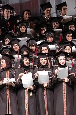 Женщины составляют более 65 процентов университетских студентов, причём в некоторых областях (науке и инженерных областях) их доля более 70 процентов[22]. После исламской революции возможности получить образование для женщин многократно выросли[22]. В 2007 году 60 % студентов иранских университетов были женщинами[22]. Согласно опросу, проведённому ЮНЕСКО, в Иране был самый высокий процент отношения женщин к мужчинам среди студентов — 1.22 : 1.00[23].