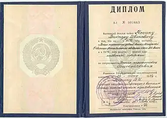 - ↑ Постановление Совета Министров СССР об отмене платы за обучение в учебных заведениях СССР. 6 июня 1956. Дата обращения: 7 января 2013. Архивировано из оригинала 21 июля 2015 года.