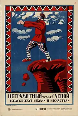 Серьёзной проблемой была неграмотность значительной части населения, особенно крестьянства. Советское руководство считало достижение всеобщей грамотности одной из приоритетных задач. Как говорил тогда Владимир Ленин: «нам нужно громадное повышение культуры. Надо добиться, чтобы уменье читать и писать служило к повышению культуры, чтобы крестьянин получил возможность применять это уменье читать и писать к улучшению своего хозяйства и своего государства»[7].