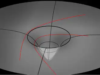 Аналогично, в пространстве-времени девиация геодезических линий (расхождение траекторий тел) связана с его кривизной. Кривизна пространства-времени однозначно определяется его метрикой — метрическим тензором.