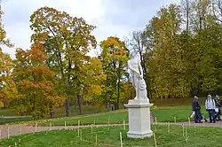 | Собственный сад | 1794—1797 годы | Один из трёх регулярных садов, в центре круглой площадки, образованной сходящимися аллеями, находится статуя Флоры. Сад украшен также десятью гермами, двумя мраморными вазами и мраморной головой Геры на балконе сада[2] | ![]() |