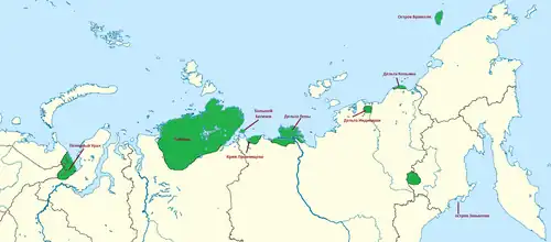 - ↑ Овцебыки Таймыра прижились на Колыме и дали потомство (недоступная ссылка).
