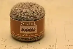 - густые и мягкие пуховые 2 порядков, составляющие подшерсток, называемый кивьютом[16]. Пух овцебыка тоньше кашемира и в восемь раз теплее овечьей шерсти. С приближением арктической весны пух сбрасывается и к августу отрастает заново[33].