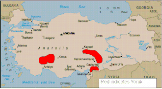 Основные районы, населённые племенем юрюки в Анатолии