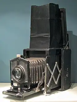 В 1909 году американская компания Graflex представила первый однообъективный зеркальный фотоаппарат «модель 1А», рассчитанный на рулонную фотоплёнку вместо фотопластинок. Камера делала 8 снимков 2,5 × 4,5 дюйма на одной катушке плёнки «тип-116»[20].