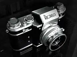 В 1952 году восточногерманское предприятие Kamera-Werke Niedersedlitz начало выпуск фотоаппарата Praktina, в котором впервые реализованы механизм прыгающей диафрагмы и возможность работы с приставным электроприводом[45]. Эта камера впервые обладала модульным принципом стыковки с принадлежностями и сменными элементами видоискателя, и стала прообразом профессиональных зеркальных фотосистем[46][47].