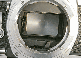 Необходимость наличия места под поворотное зеркало вынуждает применять достаточно большой задний отрезок, и затрудняет использование короткофокусных объективов[129][122]. Вплоть до 1950-х годов в этом случае использовался предварительный подъём зеркала, дающий возможность снимать широкоугольной оптикой с оправой, входящей глубоко в корпус камеры[44]. Поскольку основной видоискатель в этом случае становился неработоспособным, устанавливался дополнительный телескопический визир, а фокусировка выполнялась по метражной шкале[130]. Появление ретрофокусных объективов позволило использовать даже сверхширокоугольную оптику при нормальной работе зеркала и всего видоискателя[131]. Один из главных недостатков однообъективных зеркальных фотоаппаратов удалось устранить только при помощи автофокуса: ручная фокусировка по матовому стеклу требует безупречной остроты зрения и определённого навыка[132]. В отличие от дальномера, в котором положение точной фокусировки очевидно по отсутствию двоения, зеркальный видоискатель требует сравнения резкости при разных положениях объектива[84]. Но даже для фотографов с отличным зрением наводка на резкость затруднена при слабом освещении[123]. Для того, чтобы обеспечить яркое изображение на матовом стекле и точную фокусировку, зеркальные фотоаппараты и все сменные объективы оснащаются сложными механизмами прыгающей диафрагмы, закрывающейся только в момент съёмки. И даже несмотря на это, фокусировка объективов с небольшой светосилой гораздо сложнее, чем в дальномерных фотоаппаратах[133]. Дальномерный видоискатель остается светлым всегда, даже при надетой на объектив крышке, а точность фокусировки не зависит от установленной диафрагмы[122].