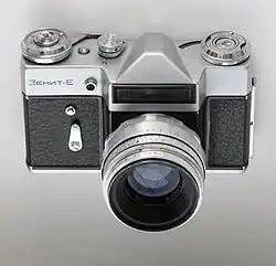 Самый массовый в мире однообъективный зеркальный фотоаппарат «Зенит-Е», выпущенный общим тиражом более 7 миллионов штук[64]. СССР, 1965 год