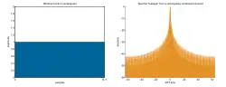 Получается автоматически при ограничении выборки N отсчетами. Максимальный уровень боковых лепестков частотной характеристики: −13.26 дБ.