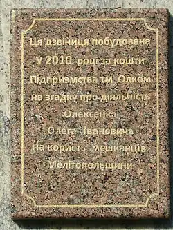 - В память об Олексенко построена звонница храма святых Кирилла и Мефодия в Мелитополе. На звоннице установлена мемориальная доска.