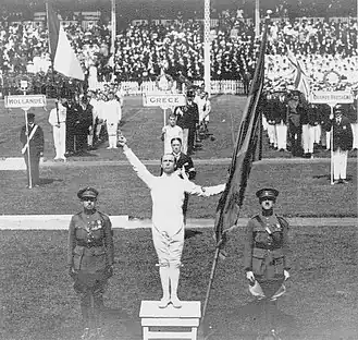 - ↑ Olympic oath (Antwerp 1920) (англ.). www.olympic.org. Дата обращения: 15 июня 2015. Архивировано из оригинала 14 мая 2015 года.