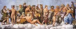 Эпитет «Олимпиец» по преимуществу относился к их главе Зевсу[2]. Переносное значение слова «олимпиец» — человек, сохраняющий невозмутимое («олимпийское») спокойствие и внешнюю величавость (таковым изображался Зевс)[3][4].