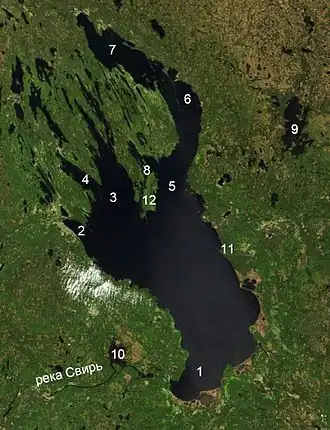 - ↑ Онежское озеро. География. Современная иллюстрированная энциклопедия — М.: Росмэн. Под редакцией проф. А. П. Горкина. 2006.