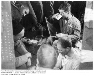 Смита поднимал Зайгрист. Смит, видя ситуацию с ветром, зацепился за советский трактор, используя его как якорь. В результате, несмотря на сильный ветер, захват троса и подъём прошли удачно. На борту B-17 экспертов ждали поздравления и порция «лечебного виски» (на илл.).