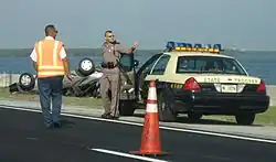 Сотрудник дорожной полиции Флориды на месте ДТП