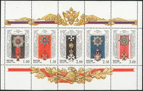 Серия из пяти почтовых марок России 1999 года с орденами Российской империи