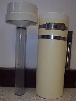 Комплект осадкомера состоит из двух металлических сосудов для сбора и сохранения выпадающих осадков, одной крышки к ним, тагана для установки осадкомерных сосудов, ветровой защиты и двух измерительных стаканов.