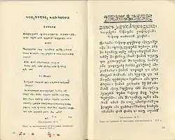 В 1938 году в Южной Осетии, на тот период входившей в состав Грузинской ССР, осетинская письменность была переведена на грузинскую графическую основу. В Северо-Осетинской АССР, входившей в РСФСР, с того же года вернулись к кириллице.