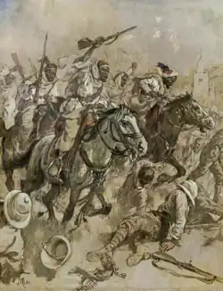 К началу Первой мировой войны сануситы, насчитывавшие около 10 000 бойцов, были обучены офицерами спецслужбы Тешкилят-и Махсуса. После провозглашения джихада в ноябре 1914 года они атаковали итальянцев, освободив Феццан к январю 1915 года и вытеснив их к побережью Средиземного моря к июлю. 24 мая 1915 года, когда Италия объявила войну Центральным державам, конфликт стал частью мировой войны. 15 октября Османская империя объявила Триполитанию своей территорией, направив советников, оружие и батальон пехоты с немецким отрядом. Ахмад аль-Шариф, приняв титул Амир аль-Муминин, присоединился к Центральным державам[30].