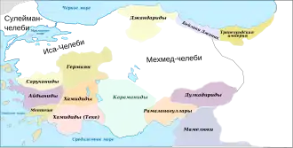 Сулейман Челеби контролировал османские провинции в Румелии (столица в Эдирне), в Анатолии османские территории были разделены между Исой Челеби (столица в Бурсе) и Мехмедом Челеби (столица в Амасье)[12]. От Сулеймана и Исы к Тамерлану приезжали послы с дарами. Тамерлан дал каждому из братьев ярлык на правление[13]. Но, признав правителями частей Османской империи сыновей Баязида, Тамерлан восстановил все ранее покорённые османами бейлики. После ухода Тамерлана начался период активного противостояния сыновей Баязида друг с другом[14].