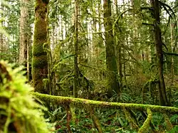 В связи с интенсивной вырубкой леса для деревообрабатывающей промышленности на острове почти не осталось девственных лесов, которые сменяют контролируемые лесопосадки, предназначенные для дальнейшей вырубки. Участки девственного леса сохранились на территории занимающих 6 % территории острова природоохранных зон (таких, как имеющий статус провинциального парка полуостров Брукс в северо-западной части Ванкувера), на берегах бухт и заливов и до некоторой степени — на дне горных долин[6]. На Западном побережье, в долине Карма́на (Carmanah Valley), находится самое большое в Канаде дерево — ситхинская ель высотой 95 метров. Эти ели обычно достигают высоты 30-50 метров, но благодаря исключительно влажному климату они и другие хвойные деревья превосходят все типичные размеры.